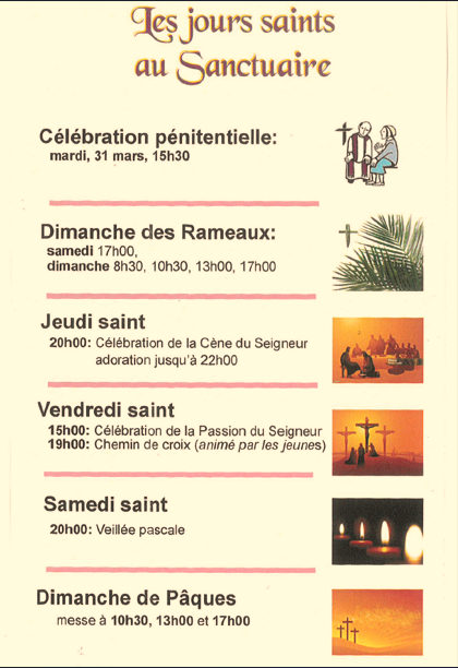 NB : La réception du Sanctuaire est fermée à tous les samedis des mois de Juillet et Août.